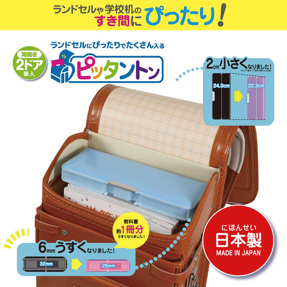 ランドセルぴったりサイズ、学校に必要なもの、全部入る、2ドア、両開き、筆入れ、筆箱、丸軸、三角軸、六角軸、対応可能、7本差し、鉛筆ホルダー、ライトブルー