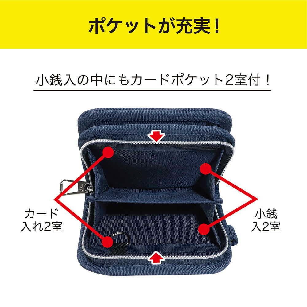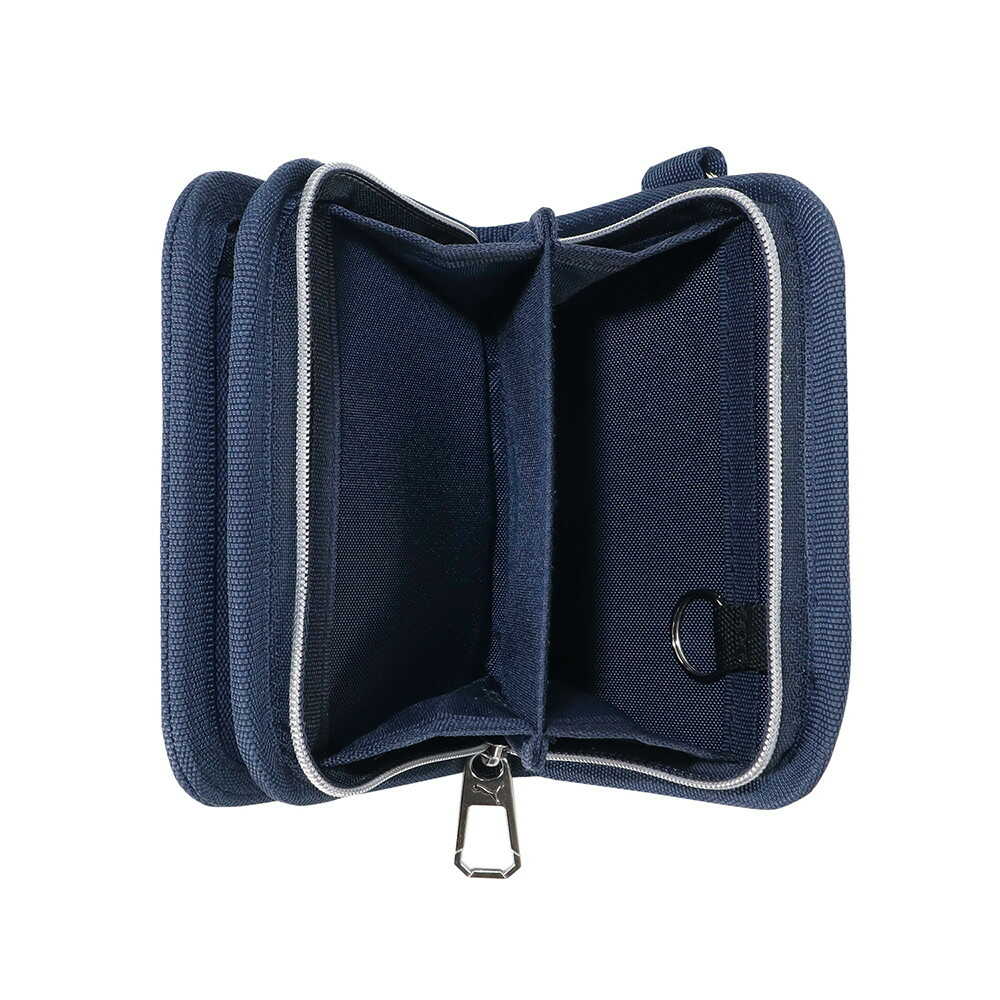 ウォレット、財布、PUMA、小銭入れ、大きく開く、出し入れしやすい、カード入れ充実、ストラップ、長さ調節、ショルダーベルト、ウォレットチェーン、札入、カード入部分、ホック仕様、小銭入、ファスナー、ポケット、札入1室、小銭入2室、カード入8室、(6室+2室)、キーリング