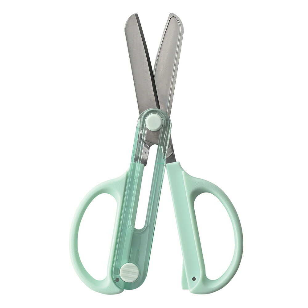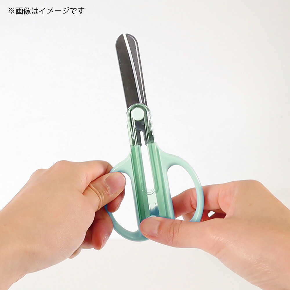 キャップ一体型はさみ、なくす、困りごと、ハサミ、スライドキャップ、ロック、安全、牛乳パック、ペットボトル、サクサク切れる、刃先丸い、のりがつきにくい刃、ミント