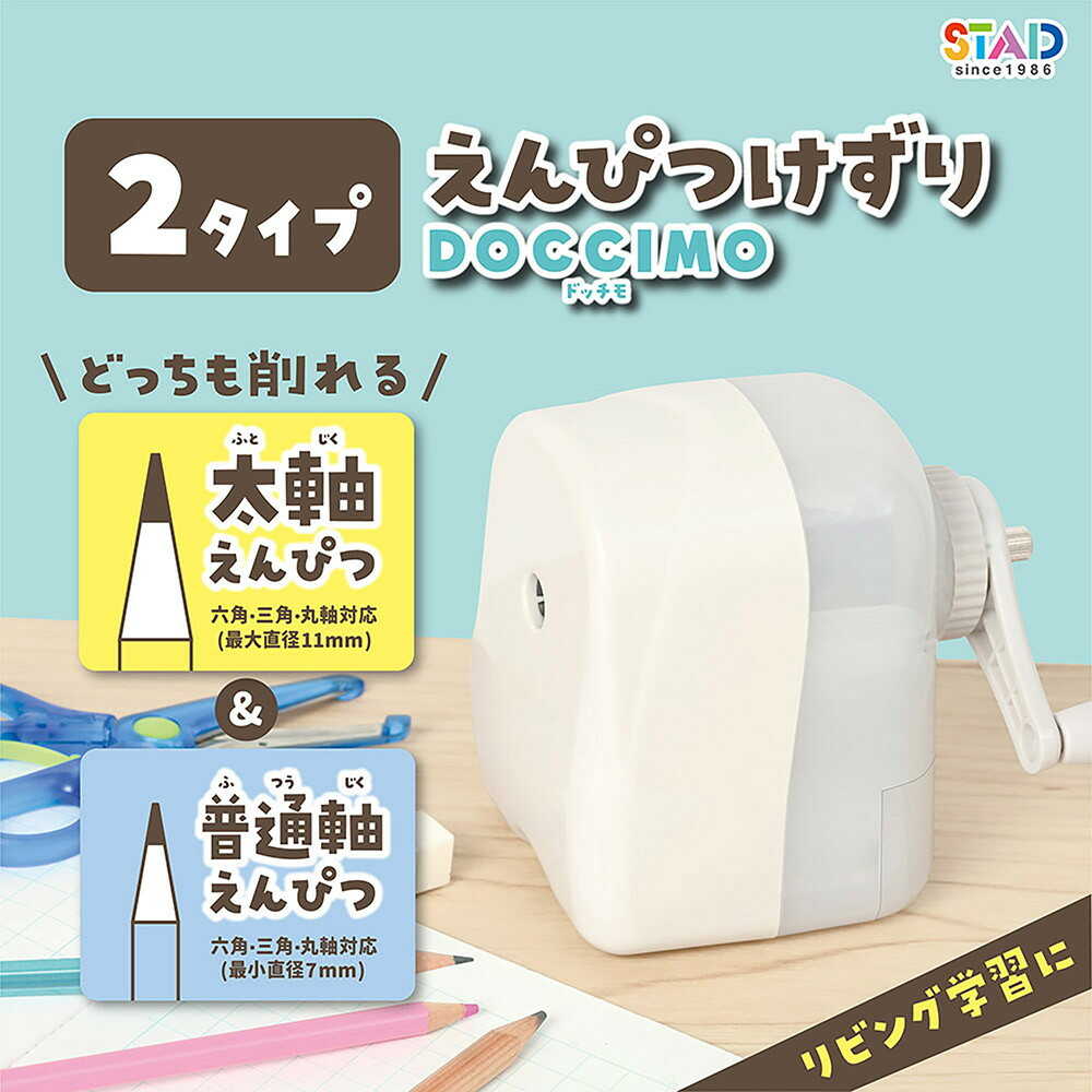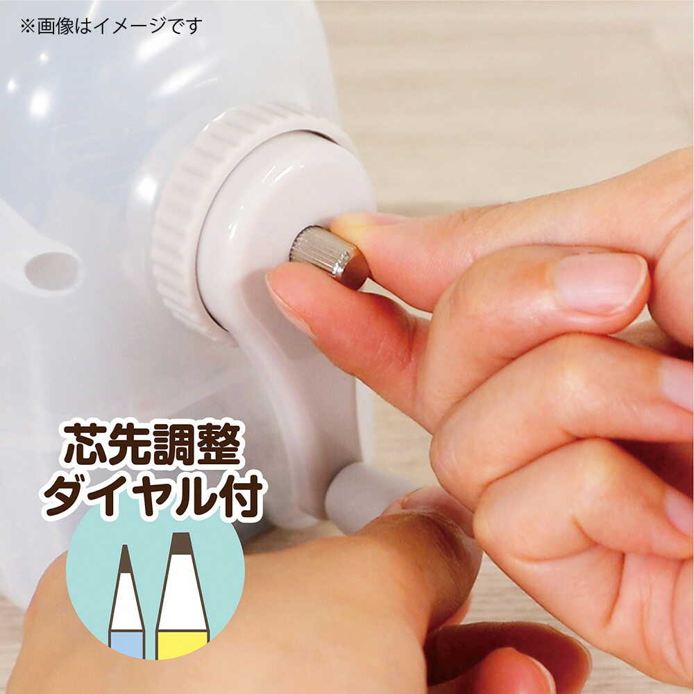 子ども~大人まで幅広く使える! 太軸と普通軸の鉛筆が削れる(直径7~11mmまで)手動の鉛筆削りです。 チャックレバー無しで指を挟まず、指が入りにくい安全設計です。 いろいろなサイズの鉛筆をしっかり固定できる3点チャックで鉛筆を固定して削ります。 芯がとがりすぎないように芯先調節ダイヤルが付いています。