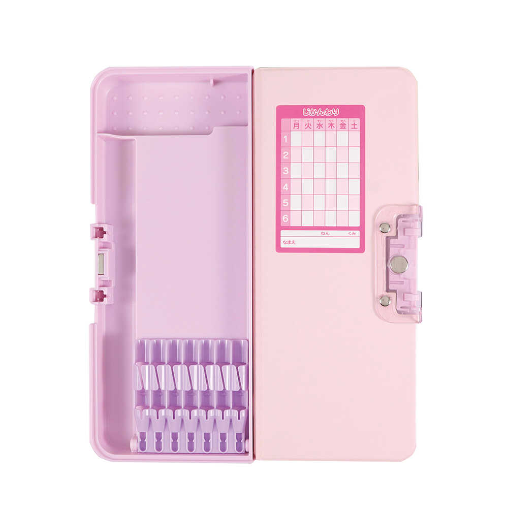 オートロック筆入れ、筆箱、自動ロック、カギの閉め忘れナシ、片手、ワンプッシュ、開けられる、力弱い、低学年、開け閉めしやすい、ランドセルぴったりサイズ、パープル