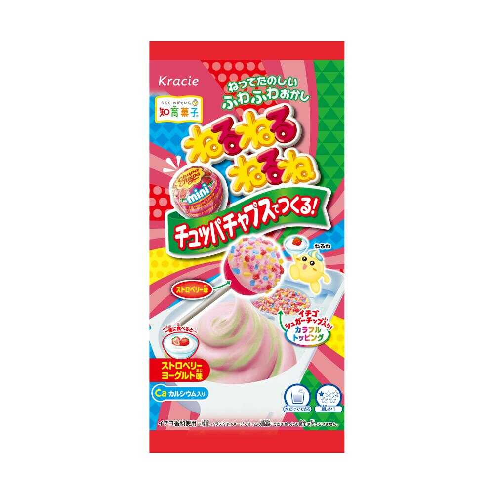 ストロベリーヨーグルト味のねるねるとストロベリー味のチュッパチャプスを一緒に楽しめます。 スプーンの代わりに入っているミニサイズのチュッパチャプスでねるねるねるねを作ることで、人気の2ブランドの味を同時に楽しむことができます。 さっぱりとした酸味のストロベリーヨーグルト味のねるねるねるねが、チュッパチャプスの甘めのストロベリー味と相性抜群! 一緒に食べることでよりイチゴの甘さを引き立たせます。 カラフルトッピングには、サクサク食感のイチゴシュガーチップが入っており、さらにイチゴの味を際立たせつつ、カラフルな色使いでチュッパチャプスのポップな世界観を再現しました。