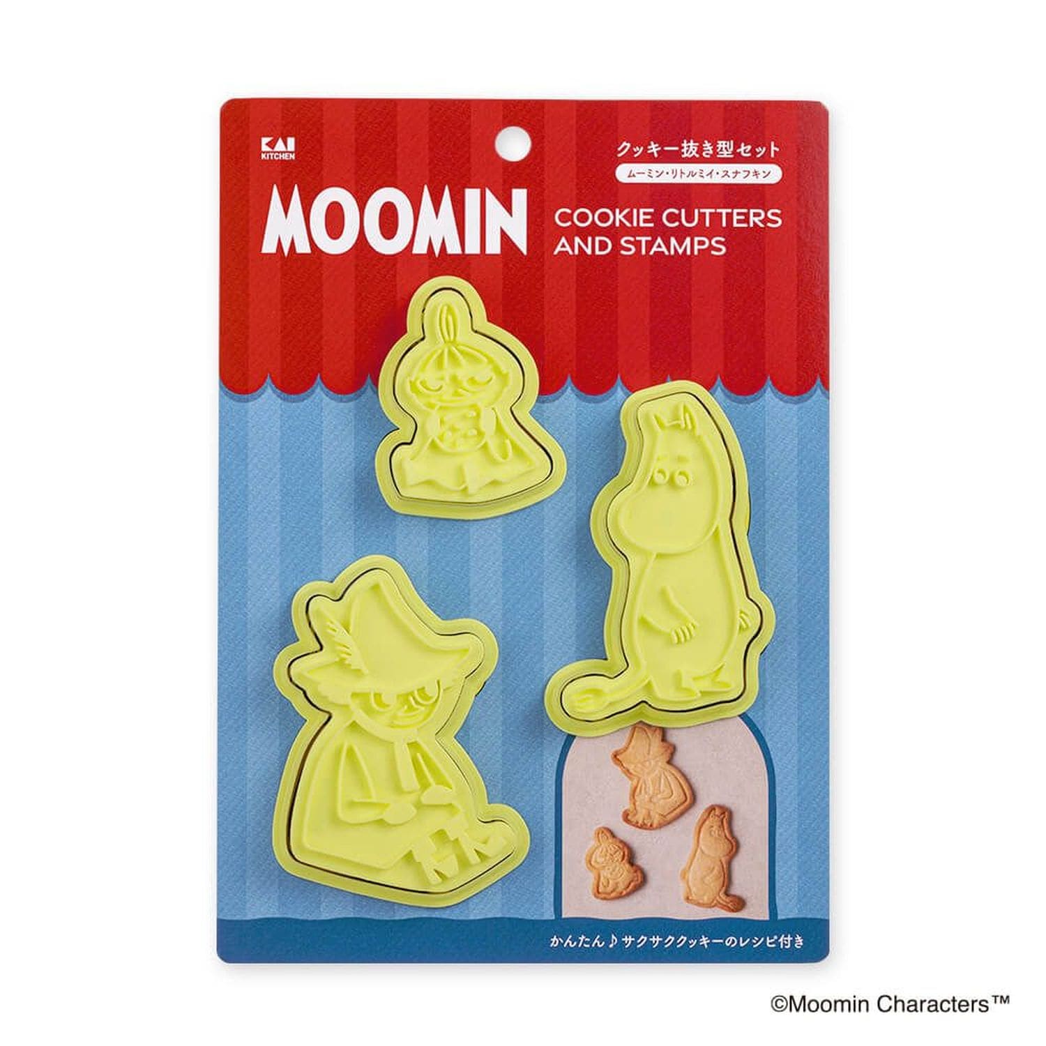 ムーミンと貝印がコラボした製菓用品シリーズ。ムーミンたちのクッキーが簡単に作れる抜き型とスタンプ型のセットです。ムーミン、リトルミイ、スナフキンの3種類の組み合わせ。クッキー生地に型を置いて上からスタンプを押すように模様を付けるだけで簡単にかわいいクッキーができます。自分用にも、プレゼントにもピッタリのクッキー型です。<仕様>耐熱温度:70度●食洗機:不可●電子レンジ:不可