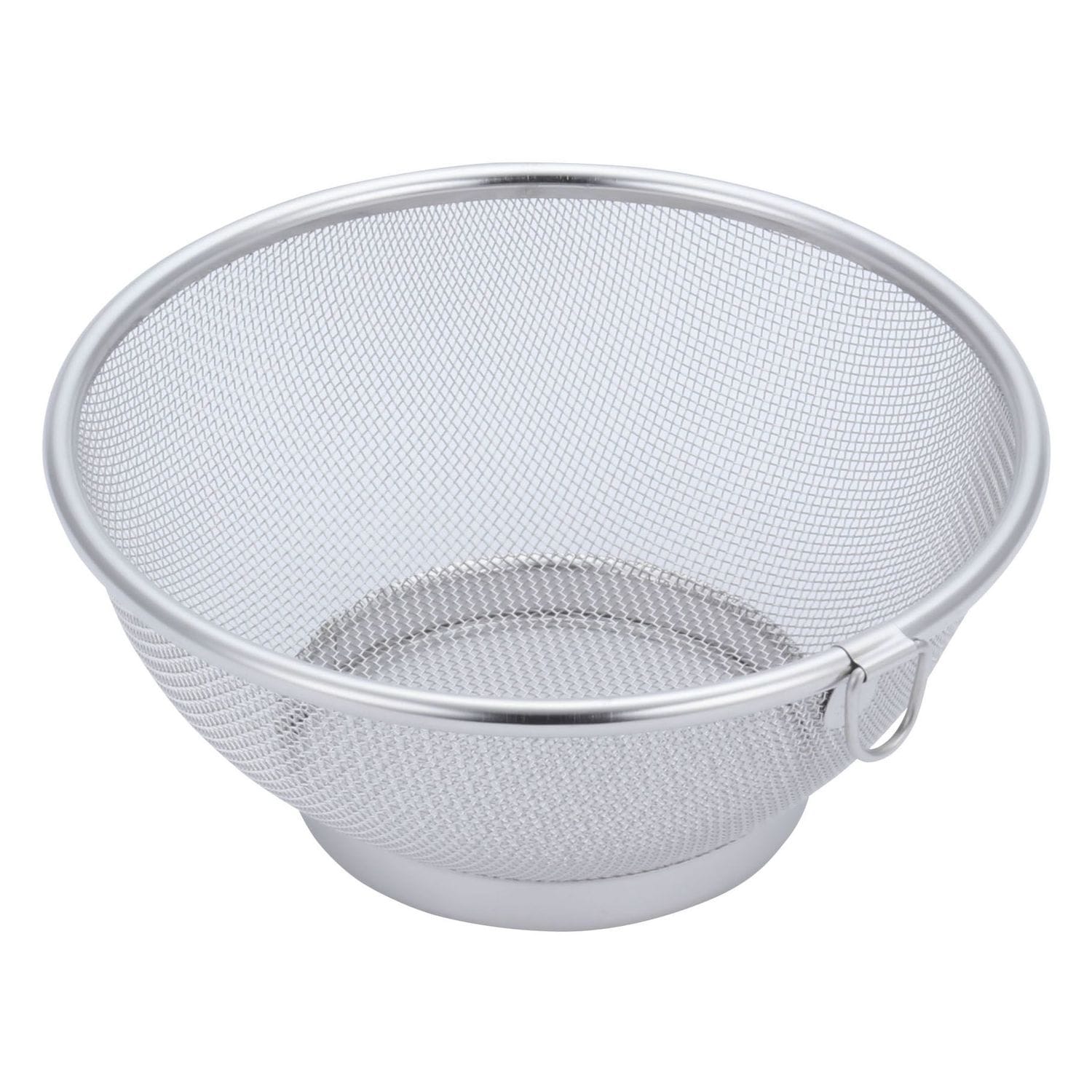 ベーシックな丸型ザルベーシックな丸型ザルです。錆びにくく衛生的なステンレス製。野菜などの水切りに便利です。引っ掛けて収納できるフック穴付。
