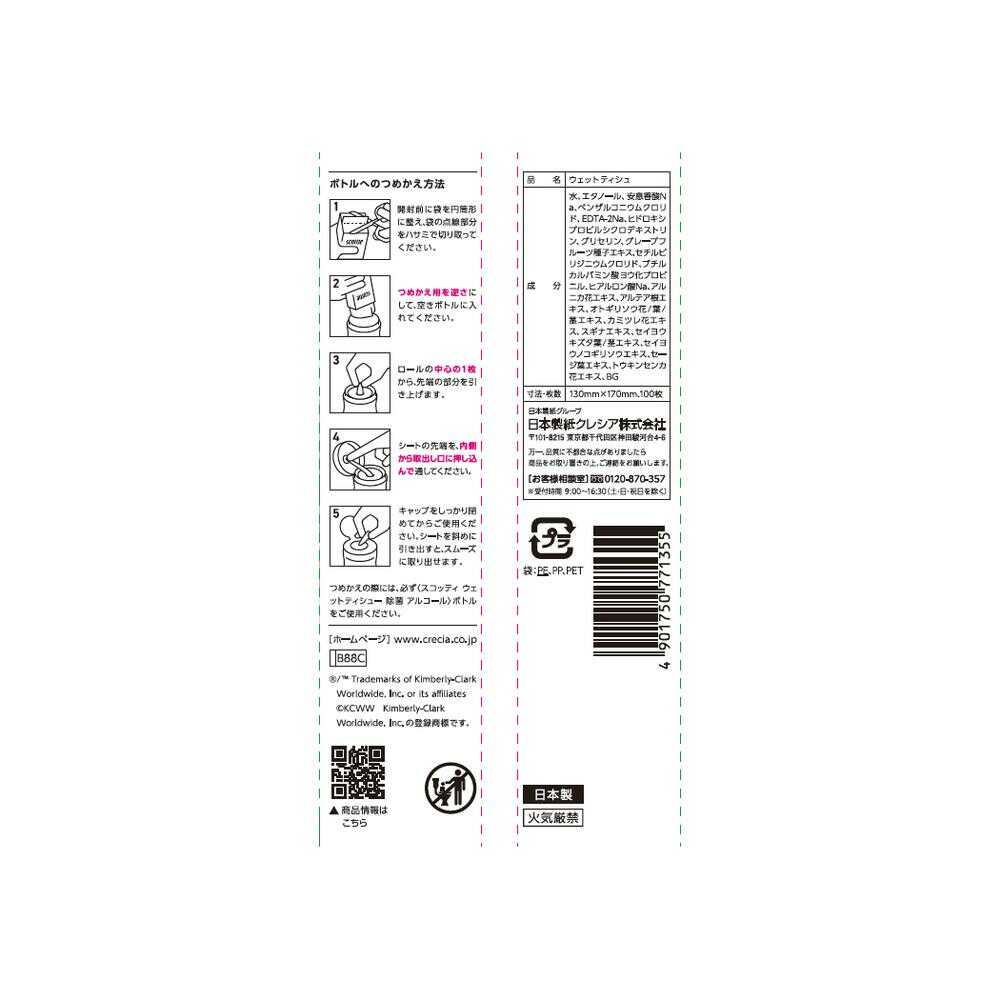 ●スリムでコンパクトな除菌アルコールタイプのウェットティシューのつめかえ用。 ●しっかりとキレイにしたい方に。 ●簡単3ステップでつめかえ時のストレス軽減。 ●植物由来のアルコール配合でバイ菌を強力除菌。除菌性能テスト済。 ●無香料、パラベンフリー。 ●ふんわり肌あたりの良いシート。 ●経済的なつめかえ用をラインアップ。 ※すべての菌を除去するわけではありません。 シートサイズ:130mm×170mm