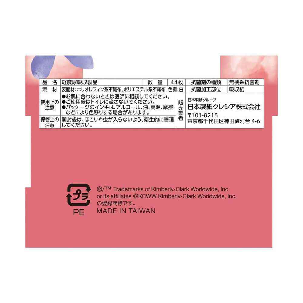 ・表面シートに天然由来素材のレーヨンを配合 ・素肌と同じ弱酸性 ・ポリマーが水分をさらっと吸収し、下着のキレイをキープ ・ニオイをすぐに消臭&24時間抗菌 ・ムレにくい全面通気性 ・フローラルソープの香り ・吸収量の目安:3cc ・パッドサイズ:長さ14.5cm