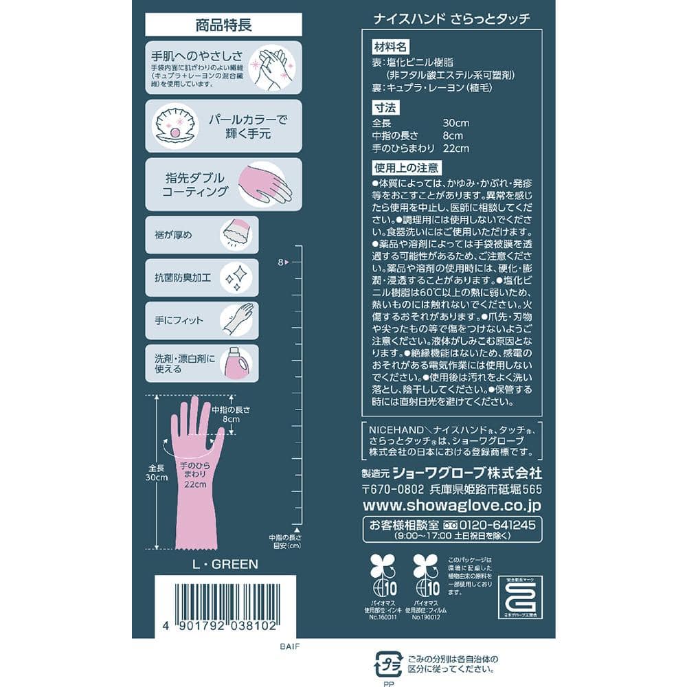 ●肌ざわりの良いやわらかなオリジナルパイルの裏毛付きで、さらっとした気持ちの良い使用感です。●光沢のあるパールカラーを採用しました。●傷つきやすい指先をダブルコーティングしています。●裾部分を厚めに加工することにより、持ちやすく、はめやすくしています。●裏毛に施した抗菌防臭加工により繊維上の菌の増殖を抑制し、いやな臭いの発生を抑えます。●独自のスベリ止め加工により、高いスベリ止め効果を発揮します。