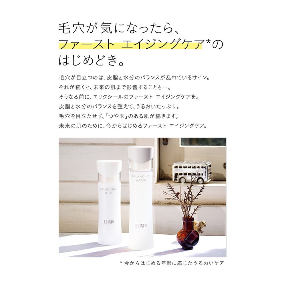 きょうと未来の肌に。ファースト エイジングケア*。スキンバランス処方で、皮脂と水分のバランスを整える乳液。水分たっぷり、表面はべたつかない、毛穴の目立たない状態を保ちます。すこやかな肌を保つことが、未来のきれいにつながります。