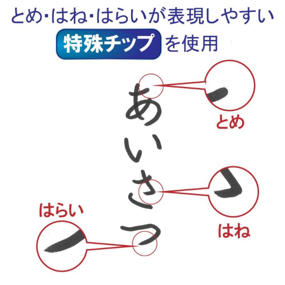 ●とめ・はね・はらいの表現しやすい特殊チップを使用。 ●水に流れにくく、直射日光があたっても色あせしにくい顔料インキを使用。 ●比較的小さめの字に適した極太タイプ。