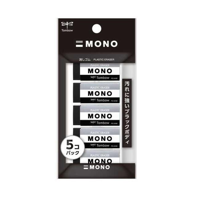 事務・製図用高性能プラスチック消しゴム消しゴムの汚れが目立たず、きれいに使えるブラック消しゴム。5コパック