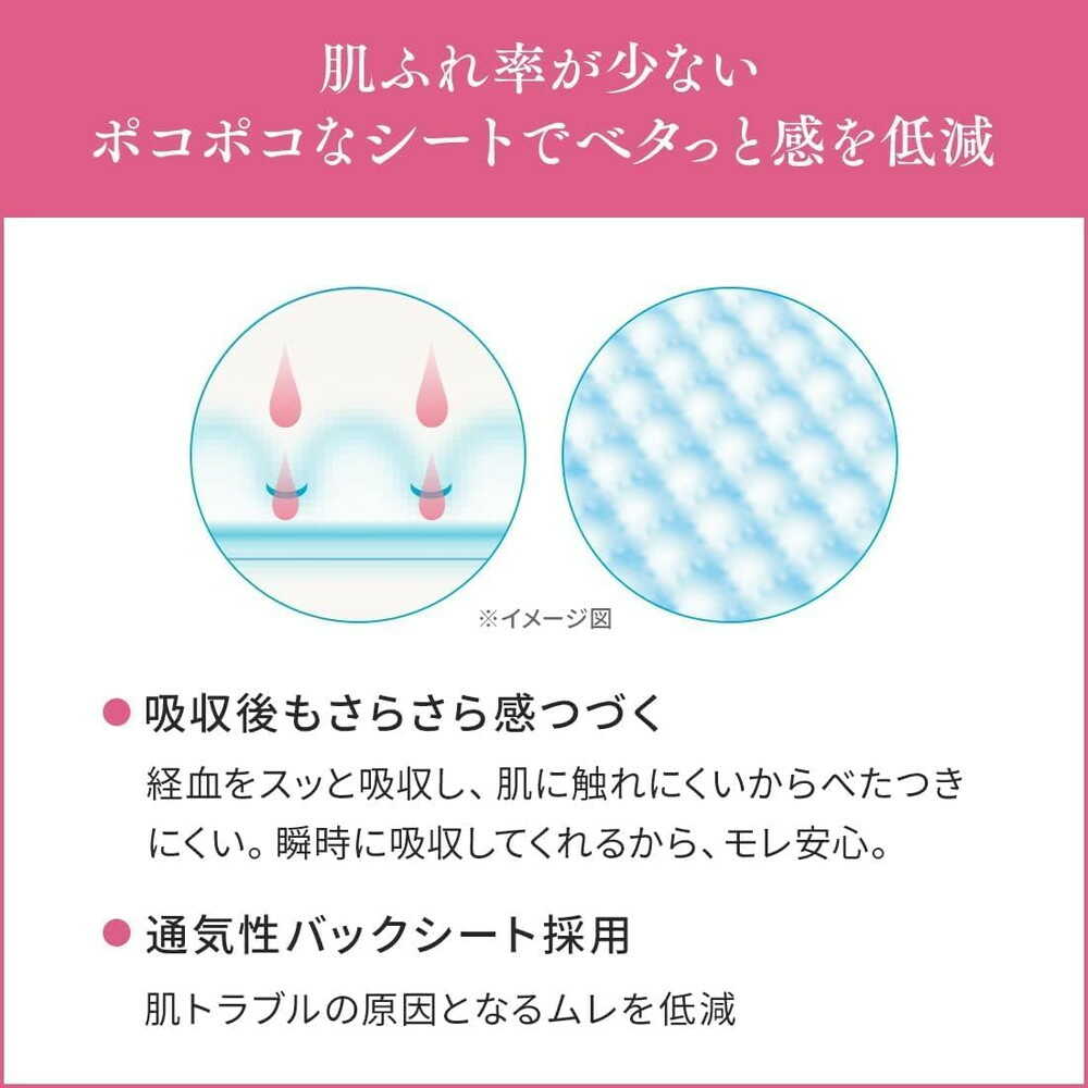 <ズレ・ヨレ違和感・肌のこすれ0へ> ●動きについてくるスライドフィット吸収体を搭載 ●独自開発の中空構造ナプキン。ナプキン内部に空間層を持つから吸収体が自在にスライド。 ●吸収体が動きに合わせてフィット。肌とナプキンがこすれにくい。※肌への摩擦によるせん断応力を約20%低減。(当社従来比)