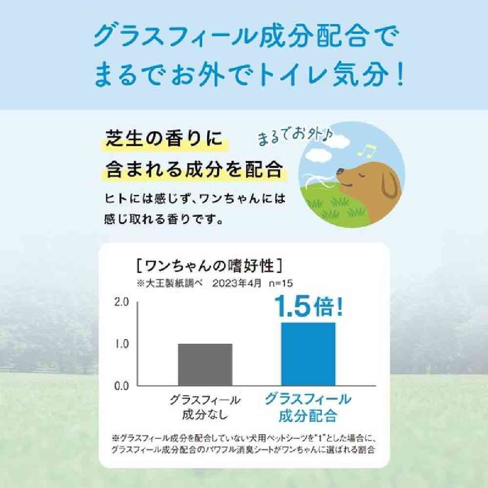 たっぷり&瞬間吸収で足ぬれフリー。極小ポリマーでパワフル消臭。グラスフィール成分配合でまるでお外。
