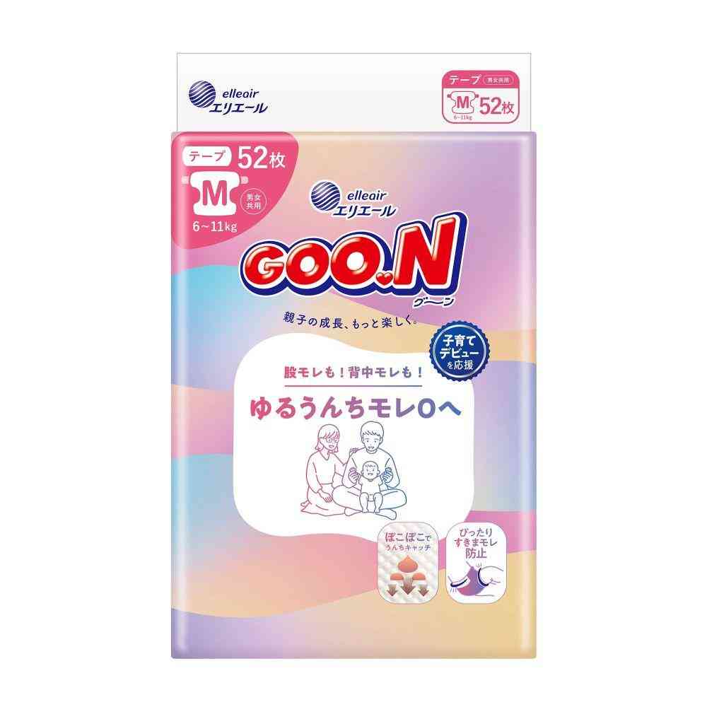 大王製紙、グーン、GOON、おむつ、紙おむつ、おしめ、ベビー、赤ちゃん、新生児、乳児、乳幼児、漏れ、テープ、タイプ、M、サイズ