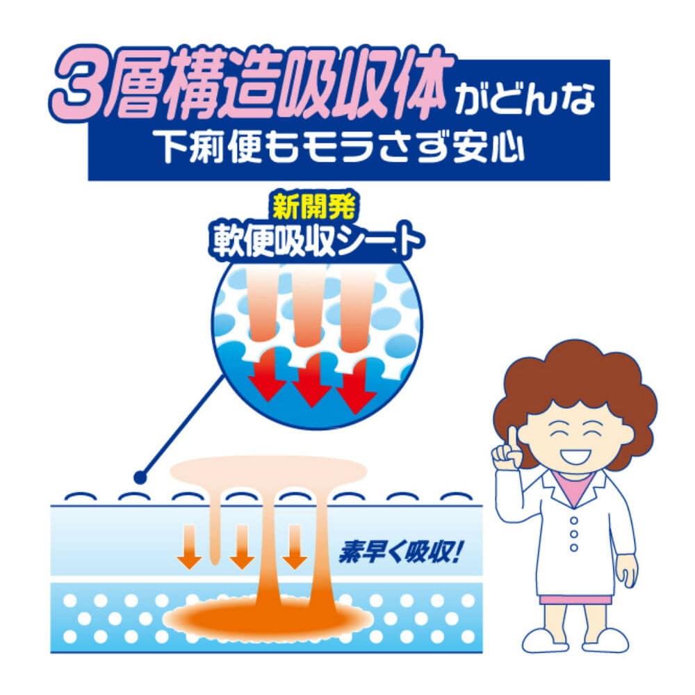 ●便をろ過する三層構造で、下痢や軟らかい便を吸収できます。