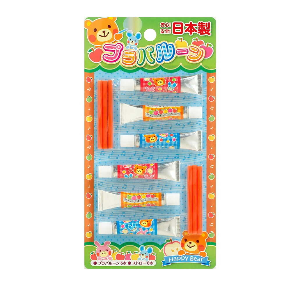 まるで割れないしゃぼん玉みたいなクリアカラーのプラバルーンです。 6本のプラバルーンに6本のストローつき