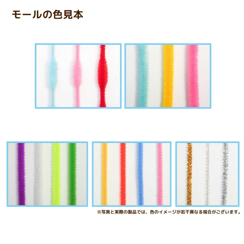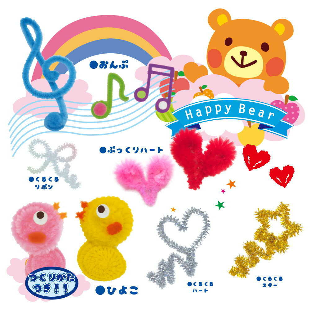ふわふわモールでかわいい作品が作れます。 音符やひよこなどの6種類の作り方付き。 メッセージカードやラッピングにも使えます。