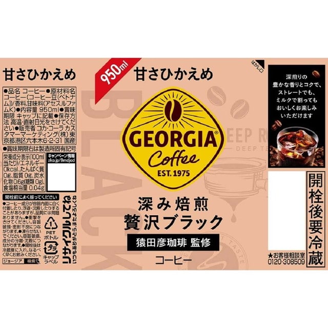 ![◆コカコーラ ジョージア カフェ ボトルコーヒー 甘さひかえめ 950ml [12個セット]](/img/0170/goods/1/4902102114998_2.jpg)