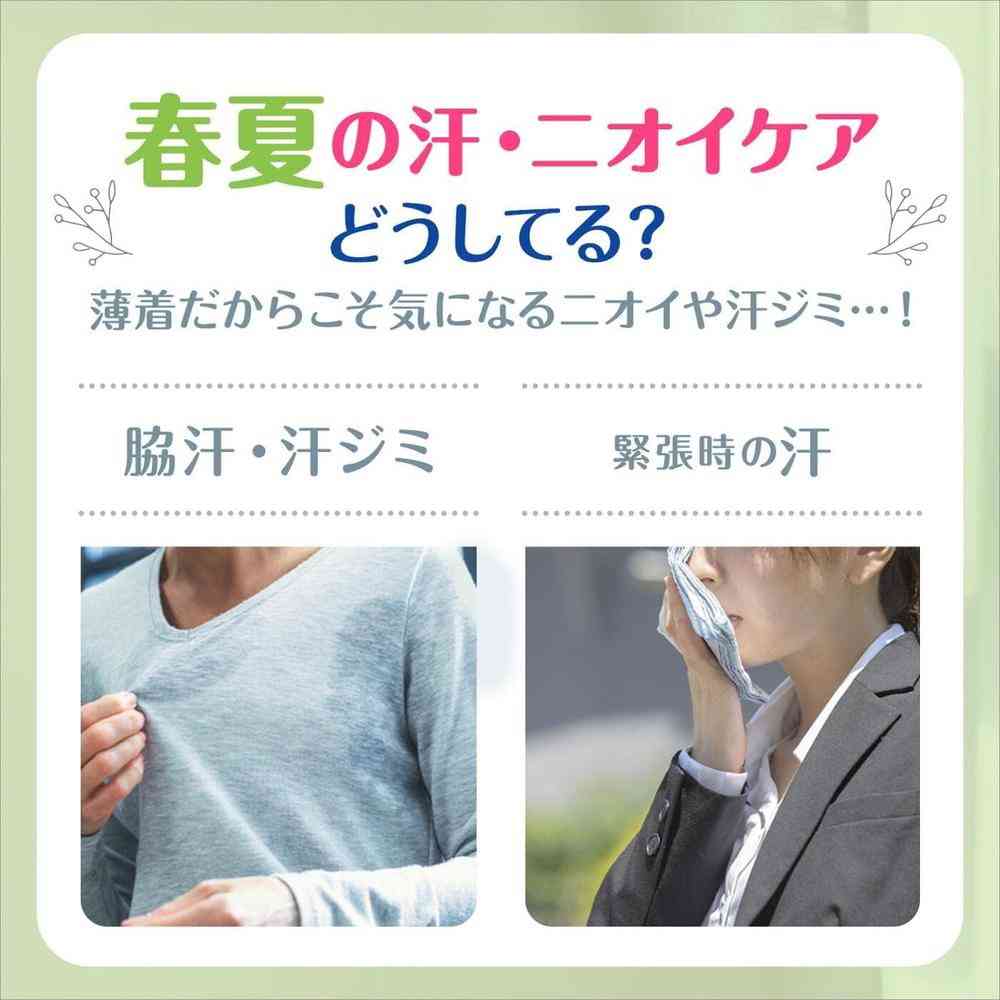 ●汗ジミもニオイも気にならない。ニオイの原因となる「汗」をかく前に抑えるプレケアに注目。 ●1日中汗ジミ・ニオイ気にならない! ●ニオイの元の汗をブロック。