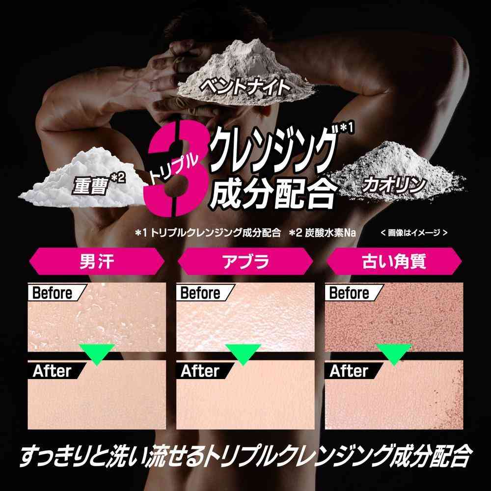 3X 男汗・アブラ・古い角質 ニオイの原因を徹底洗浄!! Zincシールド*1(ニオイ吸着剤)配合。 男性の気になるニオイを吸着! トリプルクレンジング成分**配合処方が、男汗もアブラも古い角質も、ニオイの原因を徹底洗浄! 世界的に有名な調香師が開発した、自然に香るフレグランス。 シトラス+マリンの香り(香料配合) *ネオデカン酸亜鉛 **カオリン、ベントナイト、重曹(炭酸水素Na): 洗浄成分
