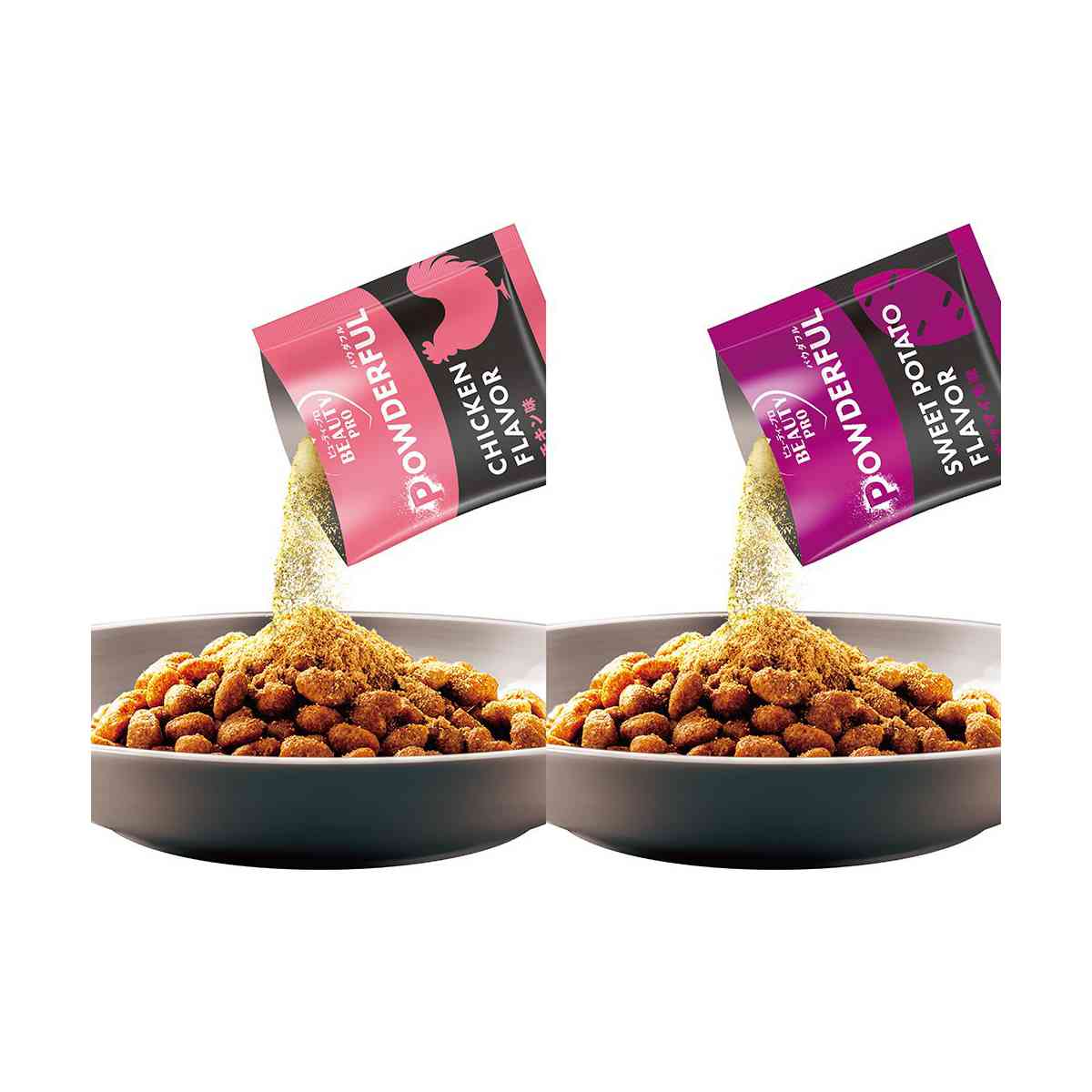 成犬用の粒とチキン味&サツマイモ味パウダーのセット。 獣医師監修でおいしく健康的に食べムラケア。