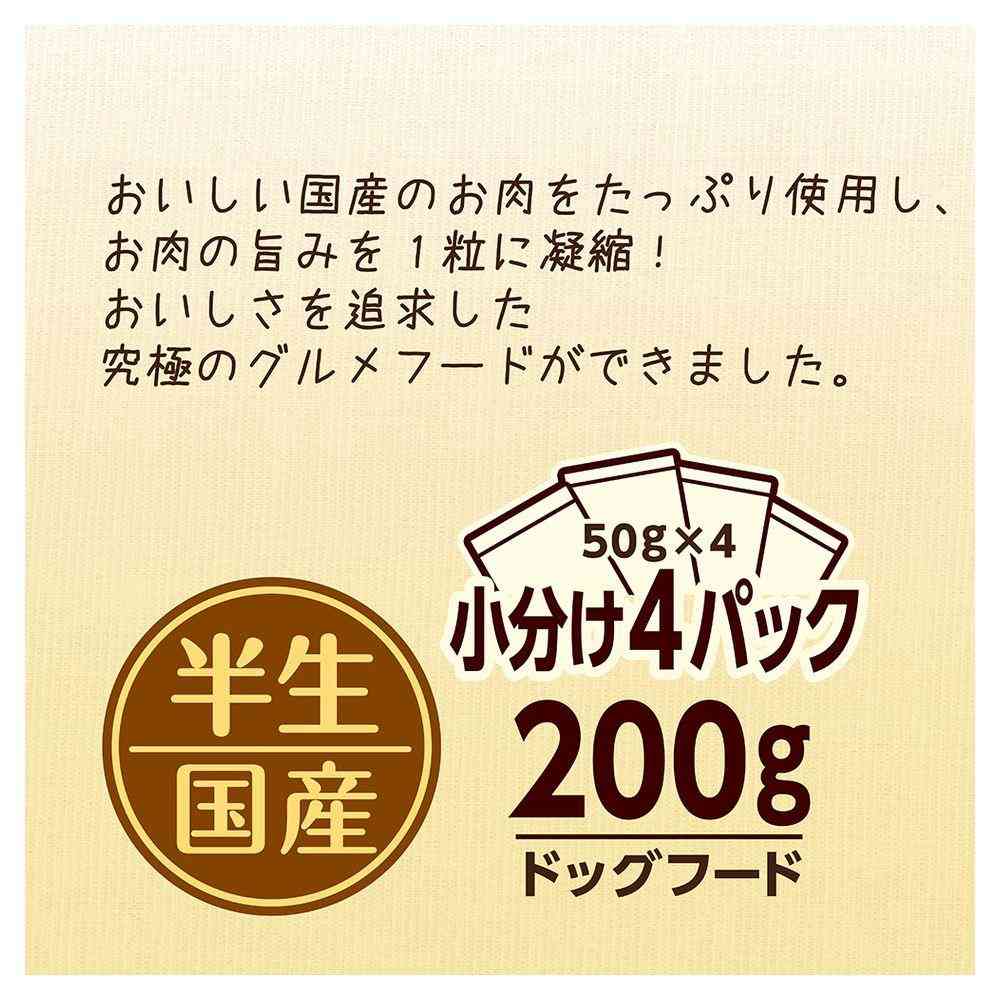 国産お肉たっぷり半生粒にやわらかささみをトッピング。美味を求める愛犬も納得のおいしさ!