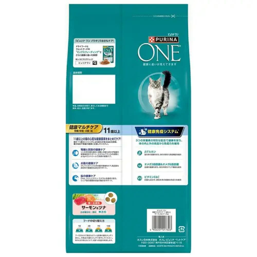 フィッシュ(サーモン、ツナ)、とうもろこしたんぱく、チキンミール、小麦たんぱく、とうもろこし、米、鶏脂(オメガ6脂肪酸源)、大豆粉、小麦、フィッシュミール、たんぱく加水分解物、可溶性食物繊維(プレバイオティクス源)、魚油(オメガ3脂肪酸(DHA)源)、酵母(βグルカン源)、ミネラル類(カルシウム、リン、カリウム、ナトリウム、クロライド、マグネシウム、鉄、銅、マンガン、亜鉛、ヨウ素、セレン)、ビタミン類(A、D、E、K、B1、B2、パントテン酸、ナイアシン、B6、葉酸、ビオチン、B12、コリン、C)、アミノ酸類(メチオニン、タウリン)