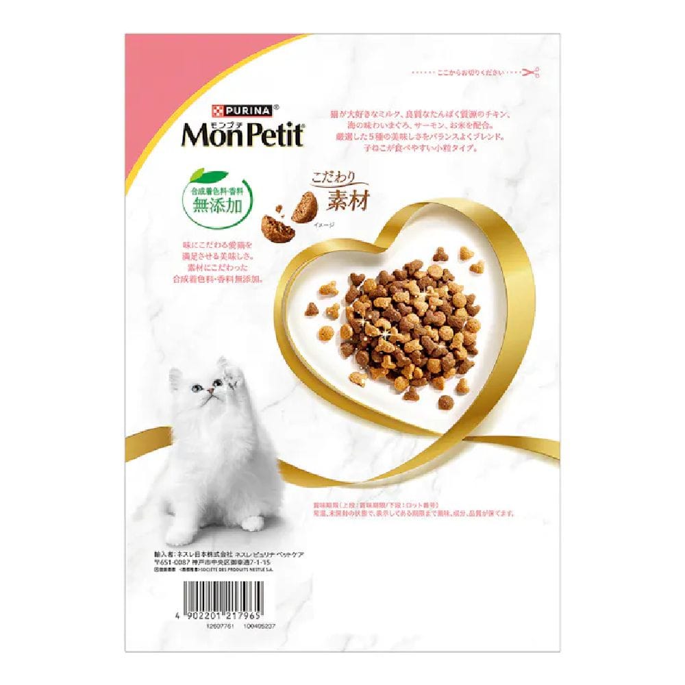 穀類(小麦、コーングルテン、小麦たんぱく、米 等)、肉類(家禽ミール、チキンミール 等)、動物性油脂、たんぱく加水分解物、脱脂大豆、フィッシュパウダー(まぐろ、サーモン)、ミルクパウダー、ミネラル類(カルシウム、リン、カリウム、ナトリウム、クロライド、マグネシウム、鉄、銅、マンガン、亜鉛、ヨウ素、セレン)、ビタミン類(A、D、E、K、B1、B2、パントテン酸、ナイアシン、B6、葉酸、ビオチン、B12、コリン)、カラメル色素、アミノ酸類(タウリン、メチオニン)