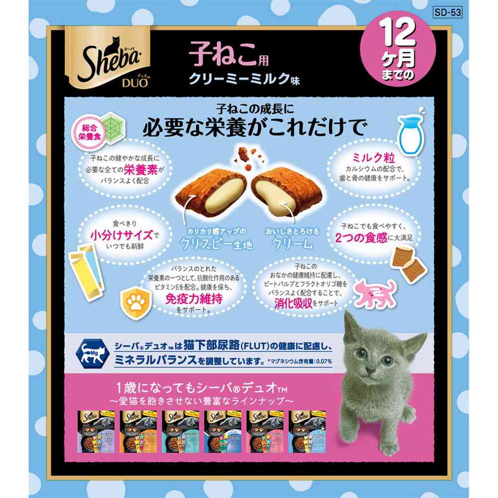 子ねこにぴったりのミルク粒。 デュオの美味しさそのままに、子ねこの必要な栄養が全てバランスよく含まれた総合栄養食。 カルシウム配合で、健康な歯と骨の発育をサポート。
