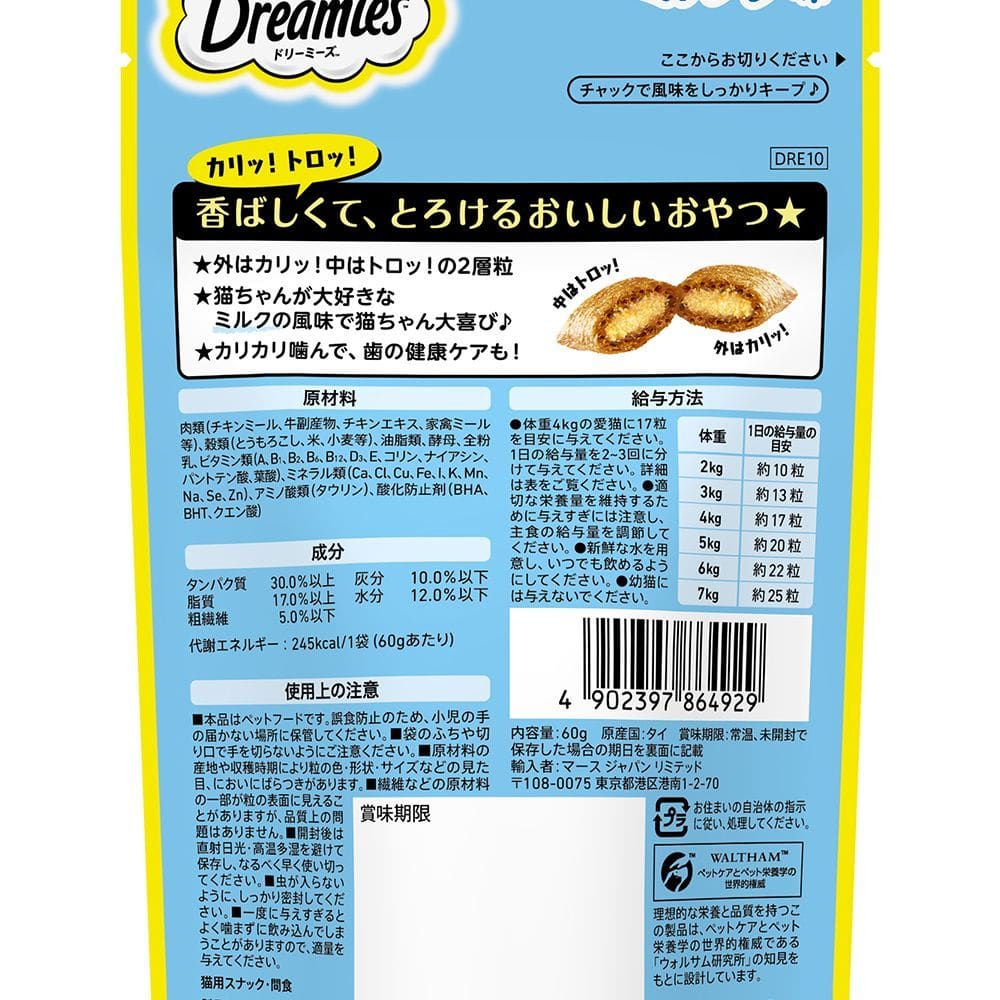 外はカリッ!中はトロッ!の2層粒と、猫ちゃんが大好きなミルクの風味たっぷりでたまらないおいしさ☆猫ちゃん大喜びのおやつ!