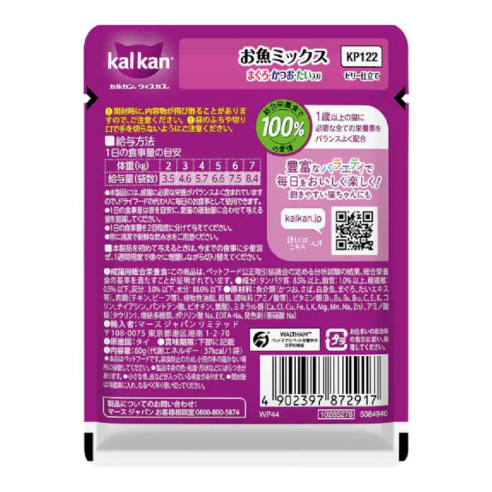 魚介類(かつお、さば、白身魚、まぐろ、たいエキス等)、肉類(チキン、ビーフ等)、植物性油脂、穀類、調味料(アミノ酸等)、ビタミン類(B1、B2、B6、B12、C、E、K、コリン、ナイアシン、パントテン酸、ビオチン、葉酸)、ミネラル類(Ca、Cl、Cu、Fe、I、K、Mg、Mn、Na、Zn)、アミノ酸類(タウリン)、増粘多糖類、ポリリン酸Na、EDTA-Na、発色剤(亜硝酸Na)