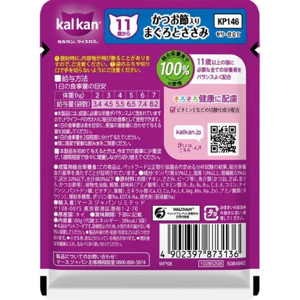 肉類(チキン、ささみ、ビーフ等)、魚介類(かつお、さば、まぐろ、かつお節等)、植物性油脂、穀類、調味料(アミノ酸等)、ビタミン類(B1、B2、B6、B12、C、E、K、コリン、ナイアシン、パントテン酸、ビオチン、葉酸)、ミネラル類(Ca、Cl、Cu、Fe、I、K、Mg、Mn、Na、Zn)、アミノ酸類(タウリン)、増粘多糖類、ポリリン酸Na、EDTA-Na、発色剤(亜硝酸Na)