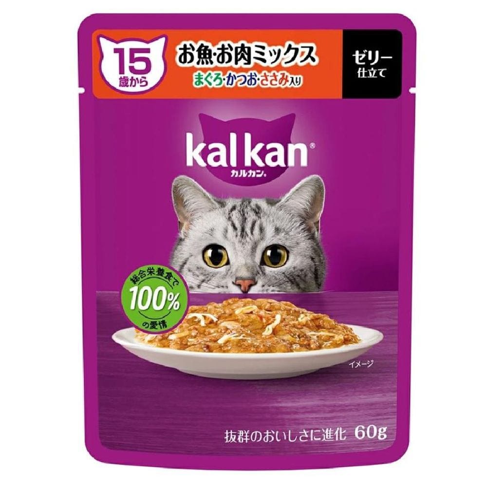 肉類(チキン、ビーフ、ささみ等)、魚介類(かつお、さば、まぐろエキス等)、植物性油脂、穀類、調味料(アミノ酸等)、ビタミン類(B1、B2、B6、B12、C、E、K、コリン、ナイアシン、パントテン酸、ビオチン、葉酸)、ミネラル類(Ca、Cl、Cu、Fe、I、K、Mg、Mn、Na、Zn)、アミノ酸類(タウリン)、増粘多糖類、ポリリン酸Na、EDTA-Na、発色剤(亜硝酸Na)