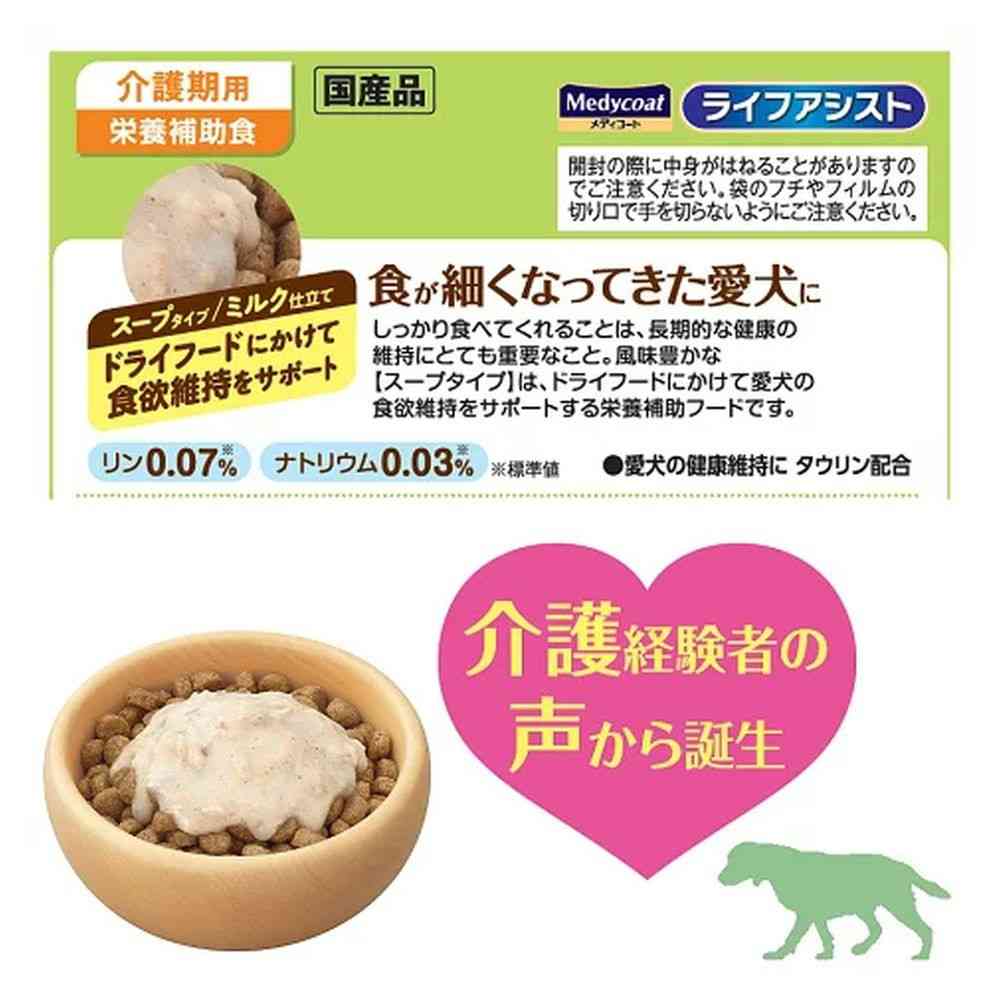 介護経験者の声から生まれたウェットフード。 老齢期や手術後などの愛犬の健康維持と、使いやすさに配慮。 スープ、ジェル、ペーストと介護状態に応じた食べやすさと風味を考えた3タイプをご用意。