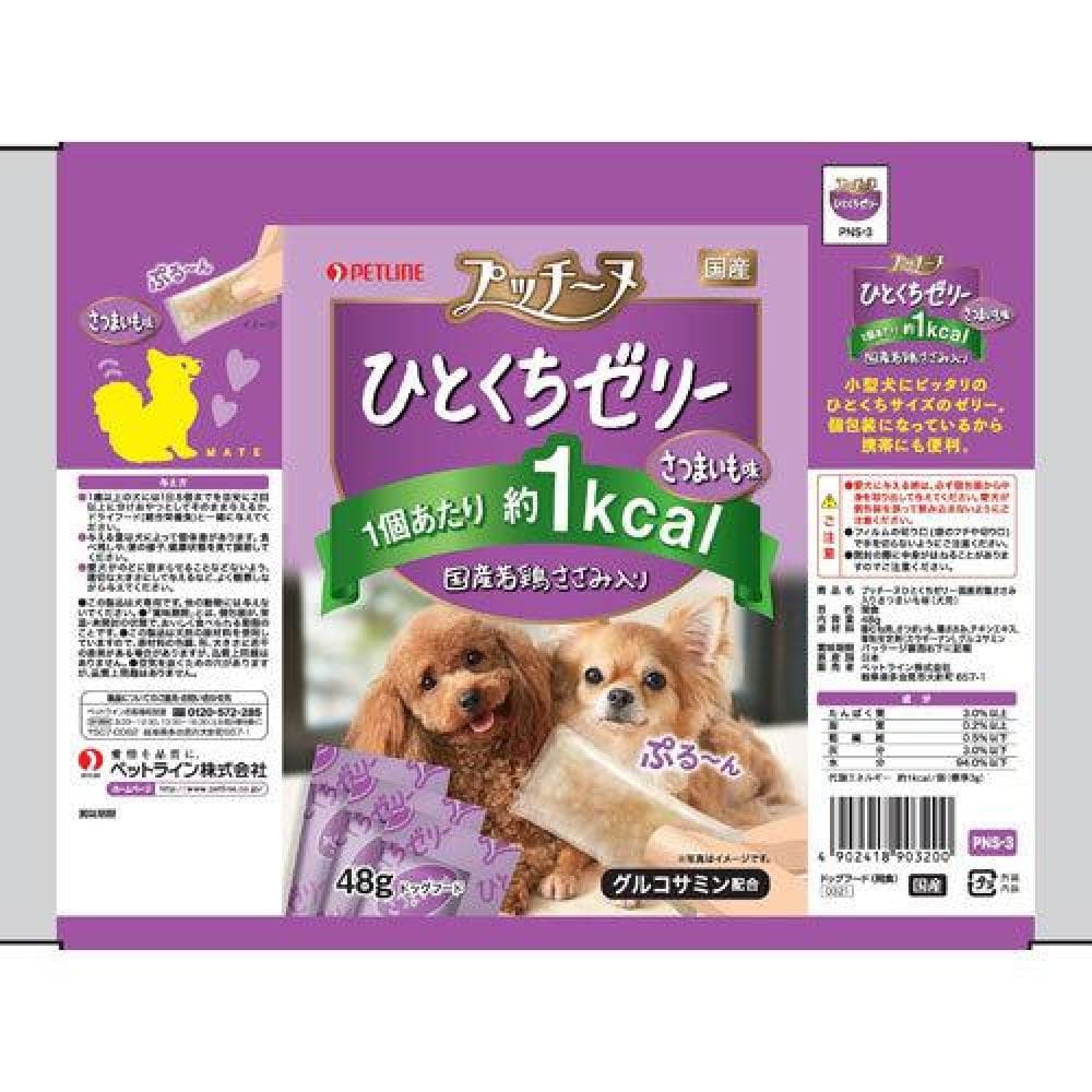 - > ペットライン ゼリー 国産若鶏ささみ入り さつまいも味 48g
