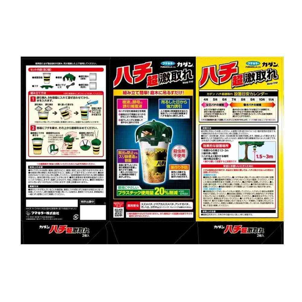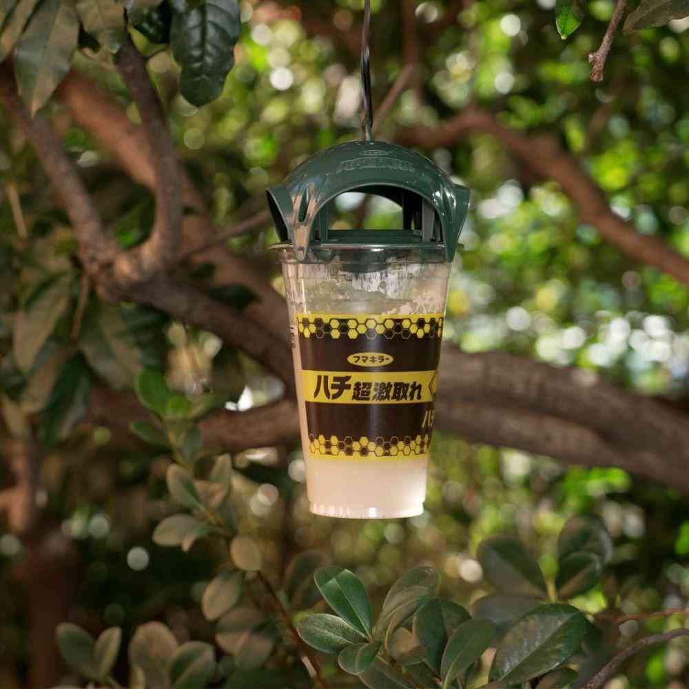 ●強力誘引! 人工樹液+酵母パワーの誘引捕獲液が強力にハチを誘引します。 ●圧倒的な捕獲力! 容器内に落下したハチに誘引捕獲液が密着し、一度入ったら逃げられません。 ●春先に活動する女王バチも捕獲! ハチの巣作り予防に繋がります。