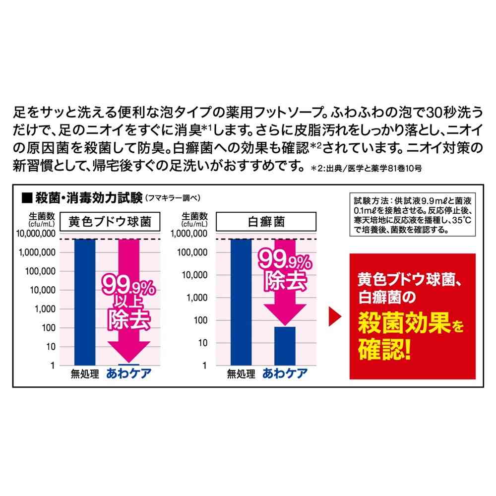 ●足のニオイをしっかり消臭(マスキング消臭による) ●足の気になる菌を殺菌・消毒! ●泡で出るから簡単に洗える ●ポンプについているストッパーを外してください。 ●適量の泡を手に取って足を洗浄し、その後よくすすいでください。 ●直接水がかかる状態でポンプを押さないでください。 ●容器は振ったり、傾けたりしないでご使用ください。