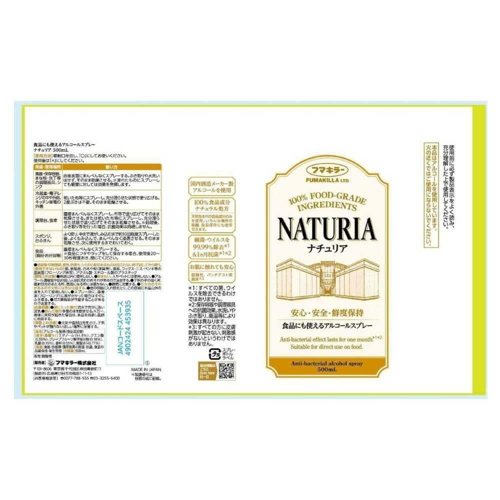 フマキラー、フマキラー、ナチュリア、アルコール、スプレー、ミスト、食品成分、除菌、ウイルス、最近、抗菌、食品、調理器具、シンク、キッチン、冷蔵庫、テーブル、子供、ペット、本体、ボトル