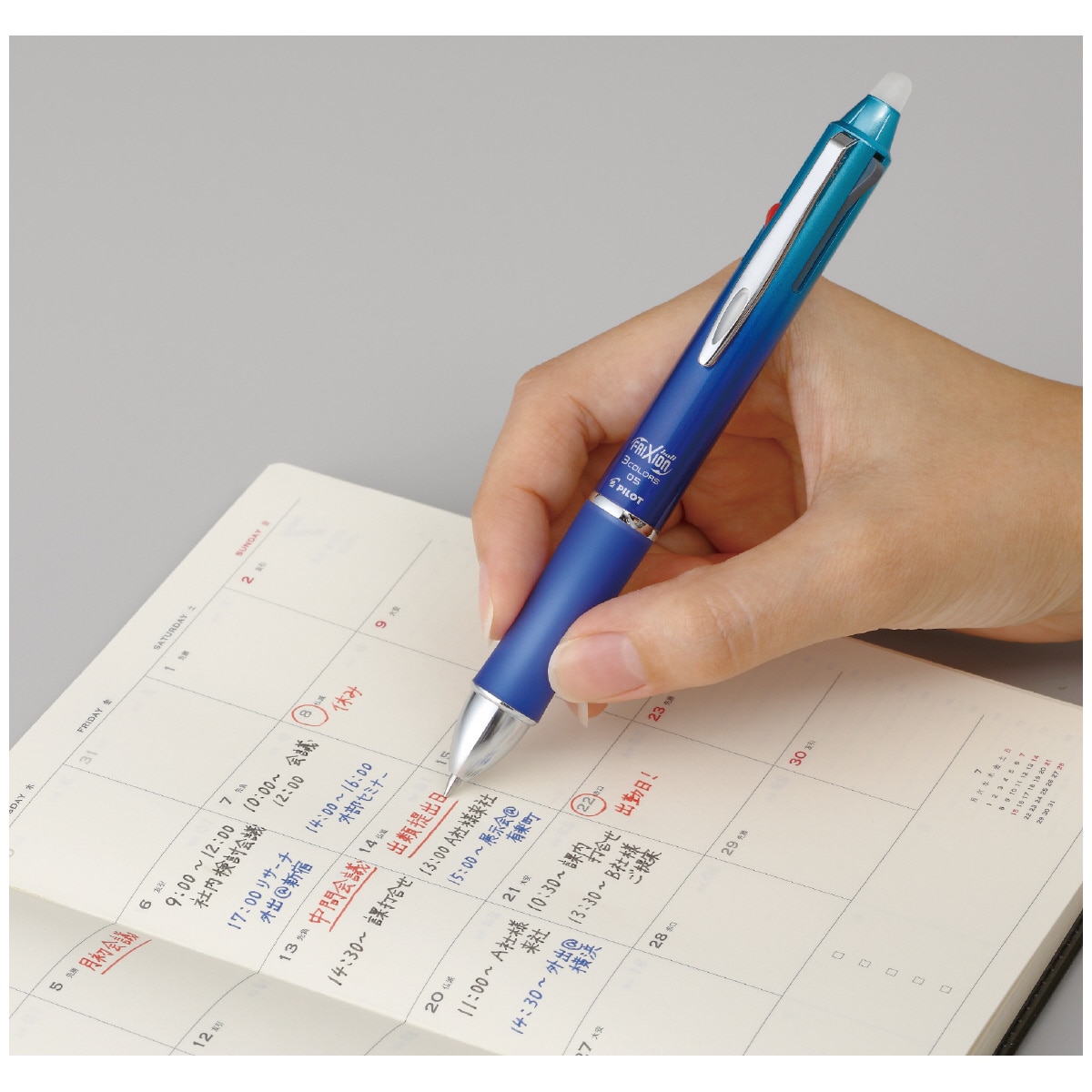 フリクションボール3 メタル 芯径0.5mm グラデーションブルー スライドレバー フリクション こすると消える 消せる