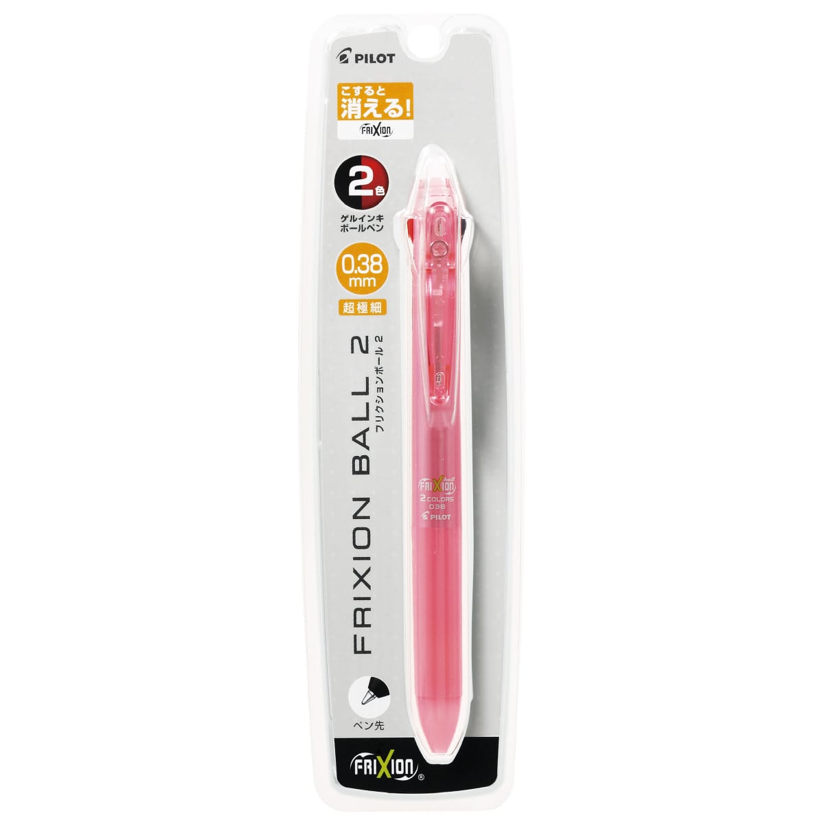 ●こすると消えるフリクションの何度でも書き消し可能な利便性の高い2色ボールペンです。 ●1本で2色を使い分けでき、持ち運びしやすい最大径12.2mmのスリムボディ。 ●0.38mmのペン先は細かい箇所への書き込みに最適です。 ●グリップは段差のないなめらかな形状なので、手帳などのペンホルダーにとても差し込みやすいです。 ●本体色:ソフトピンク ●インキ色:黒・赤