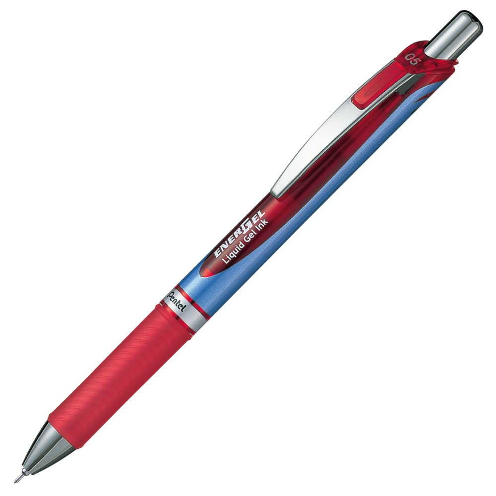 エナージェルインキ採用。 軽くなめらかな書き味。 濃くはっきりとした文字が書け、速記にも強く、乾きも速い。 ノックしてすばやく書けます。 ●インキ色:赤 ●軸色:ブルー