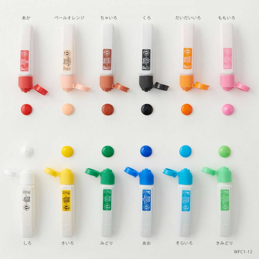 キャップ:再生PP チューブ:再生PE えのぐ:顔料・体質顔料・水溶性糊料・安定剤・水