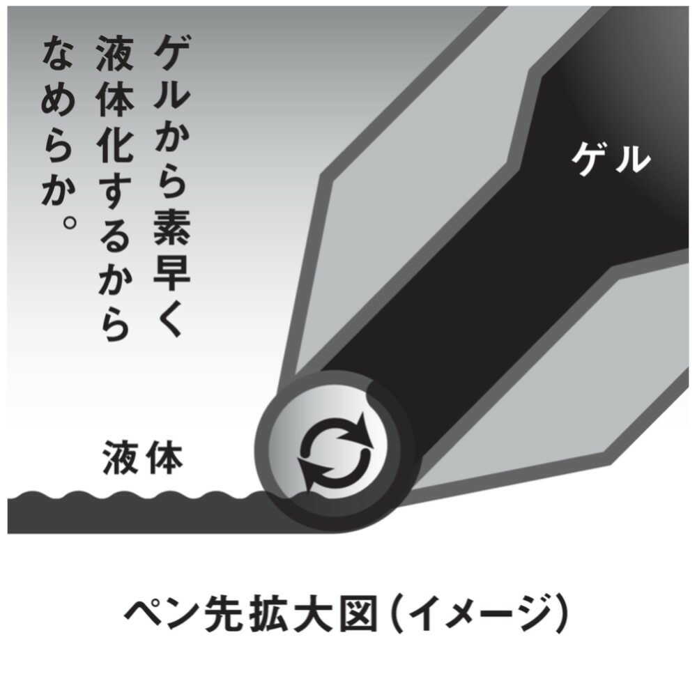 エナージェルインキ採用。 軽くなめらかな書き味。 濃くはっきりとした文字が書け、速記にも強く、乾きも速い。