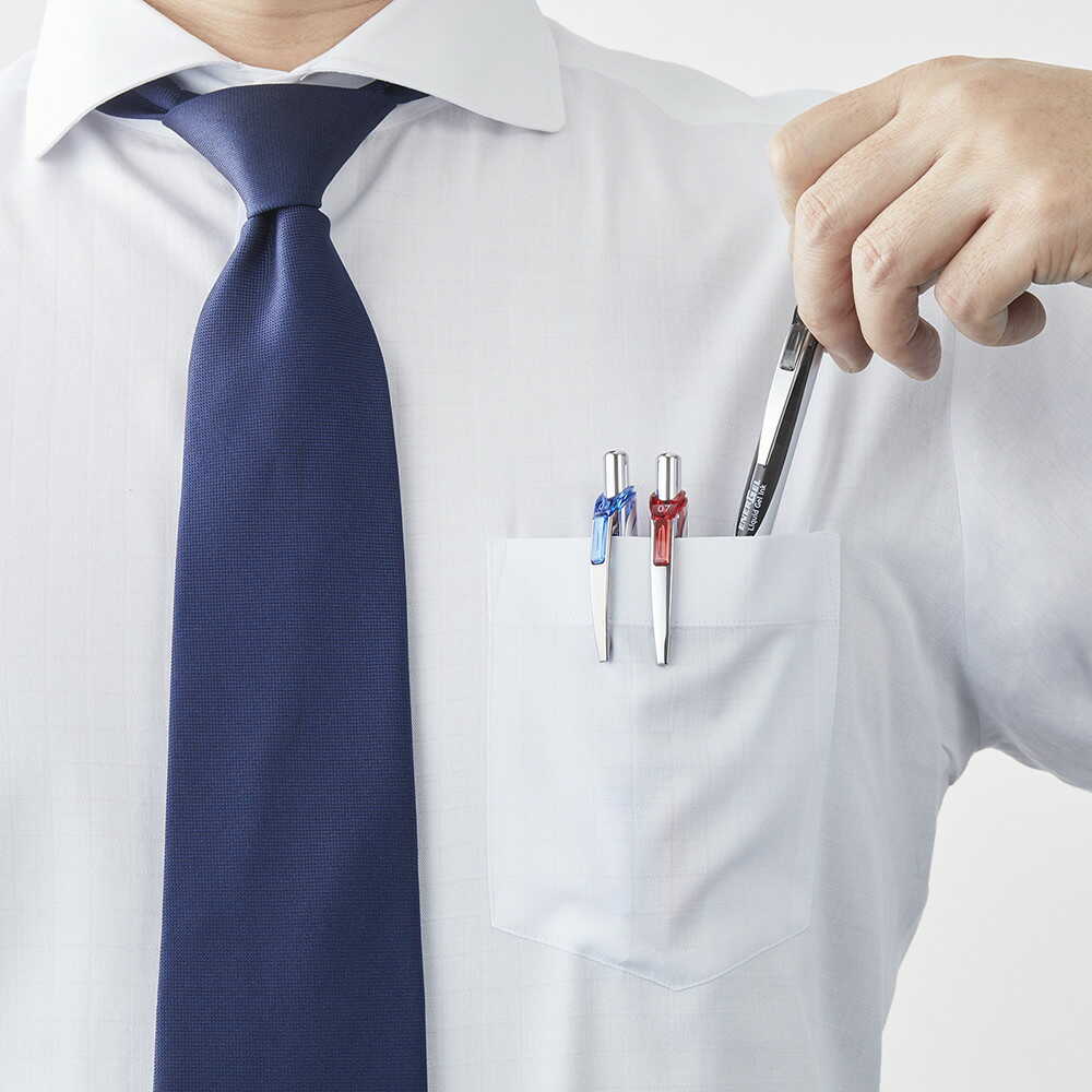エナージェルインキ採用。 軽くなめらかな書き味。 濃くはっきりとした文字が書け、速記にも強く、乾きも速い。 ノックしてすばやく書けます。
