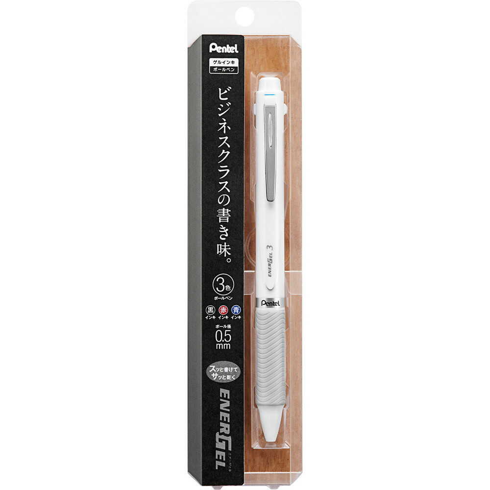 エナージェルインキ採用。 軽くなめらかな書き味。 濃くはっきりとした文字が書け、速記にも強く、乾きも速い。 ビジネスシーンをサポートする3色ボールペンです。 ●インキ色:黒・赤・青 ●軸色:ホワイト