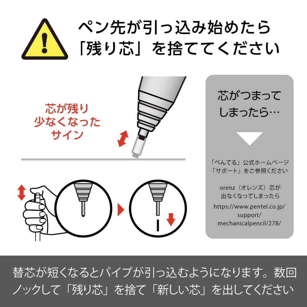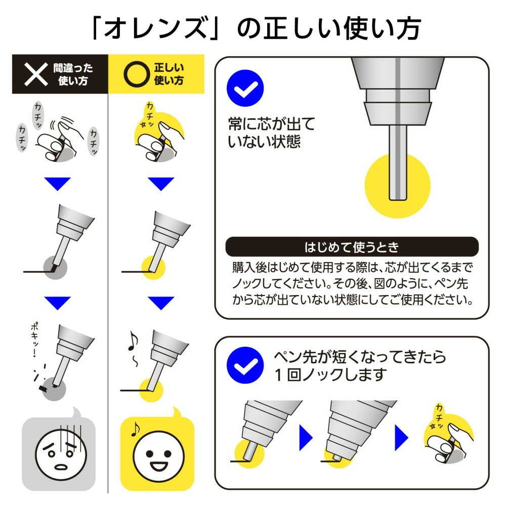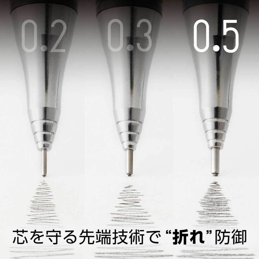 芯を守りながら書く不思議なシャープペンシル。 極細の芯でも折れずに、長く書き続けられます。 メタルグリップの重みで低重心となり、軽い筆圧での安定した筆記が可能に。 長時間筆記しても疲れにくい、まるで紙に吸い付くような書き心地を実現しました。 1回のノックで長く書き続けられ、さらに芯が折れる心配もないため、書くことに集中できます。 ●軸色:レッド