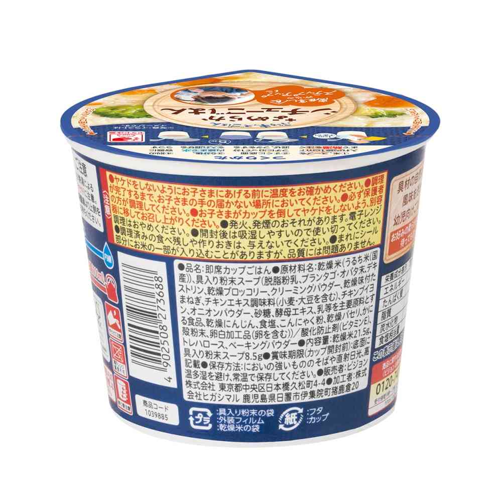 ●原材料名:乾燥米(うるち米(国産) )、具入り粉末スープ(脱脂粉乳、プランタゴ・オバタ末、デキストリン、乾燥ブロッコリー、クリーミングパウダー、乾燥味付たまねぎ、チキンエキス調味料(小麦・大豆を含む)、チキンブイヨン、オニオンパウダー、砂糖、酵母エキス、乳等を主要原料とする食品、乾燥にんじん、食塩、こんにゃく粉、乾燥パセリ、かに殻粉末、卵白加工品(卵を含む))/酸化防止剤(ビタミンE)、トレハロース、ベーキングパウダー 原材料に含まれるアレルギー物質(28品目中)かに・小麦・卵・乳成分・ごま・大豆・鶏肉・豚肉