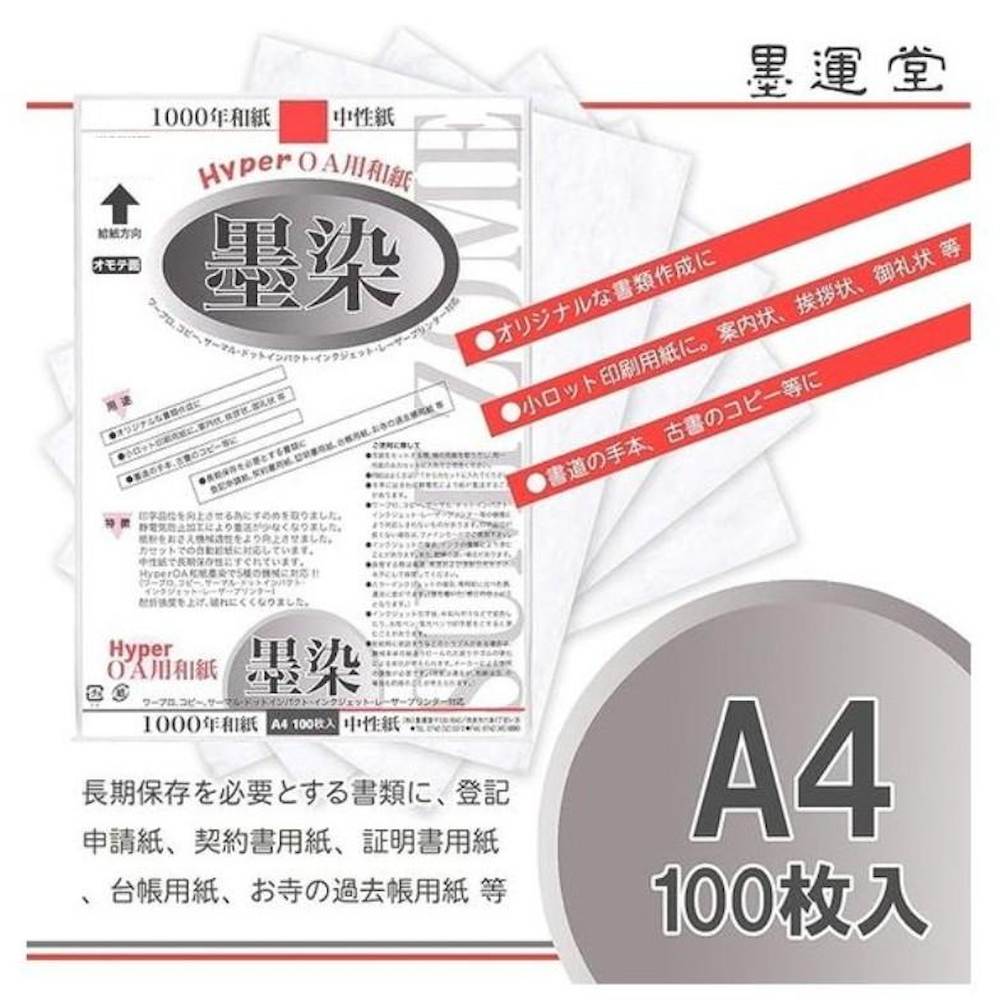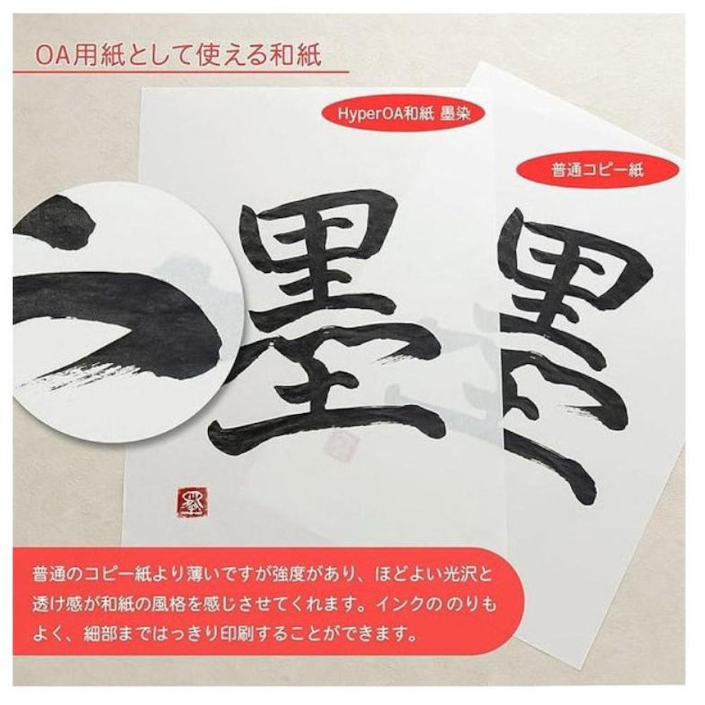 OA用紙と使える和紙 Hyper和紙墨染B4判の10冊セット。ワープロ、コピー、サーマ、ドットインパクト、インクジェット、レーザープリンターに対応したOA用の和紙。 書類作成、案内状、挨拶状、お礼状、古書のコピーまた、長期保存性に優れた1000年和紙ですので、登記申請書、契約書用紙、証明書用紙、台帳用紙として使用できる。
