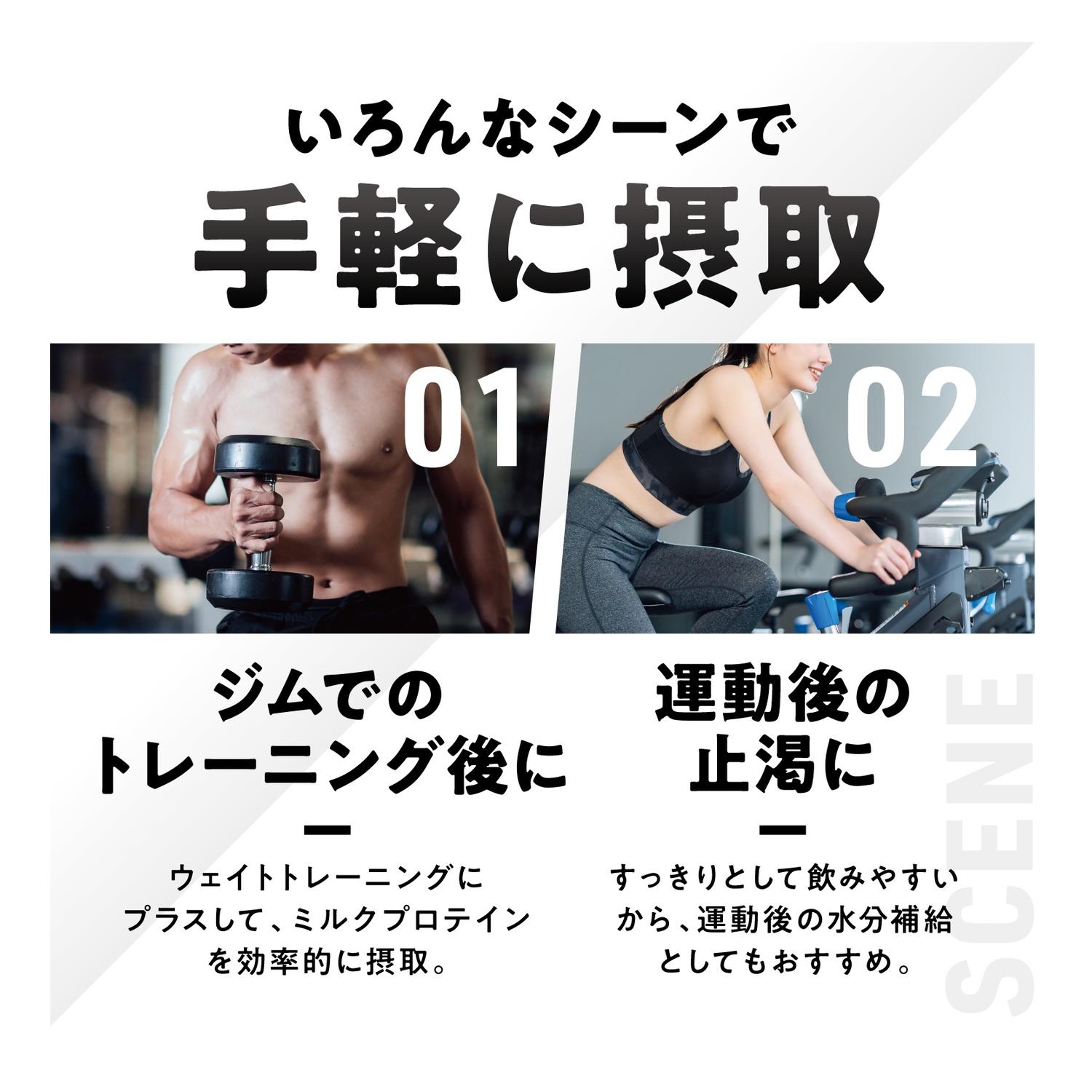 カラダづくりに有効なミルクプロテインを15g配合し、運動後に摂取することで理想のカラダづくりをサポートします。