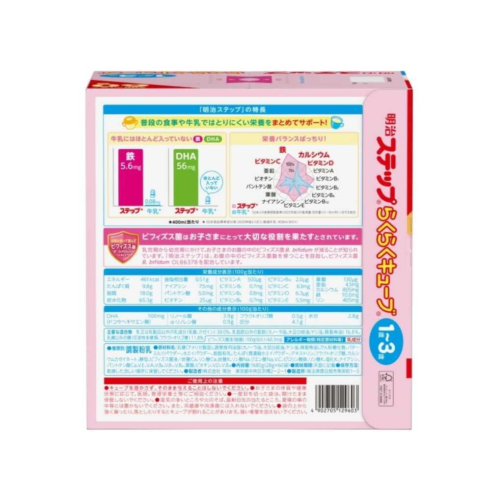 明治、meiji、ステップ、ミルク、粉ミルク、フォローアップ、らくらく、キューブ、固形、お出かけ、持ち運び、携帯、旅行、赤ちゃん、乳児、幼児、子供
