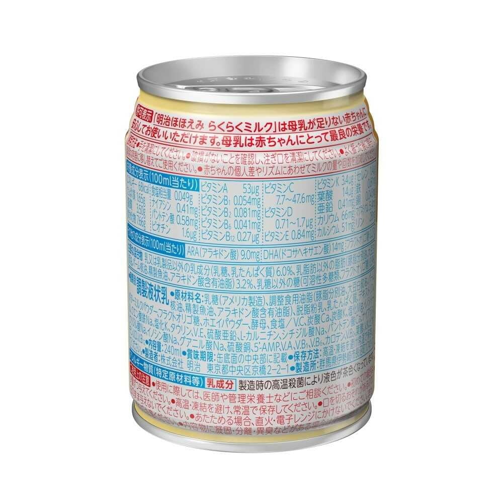哺乳ビンに注ぐだけの液体タイプ! ●0~1歳頃までの赤ちゃんのための母乳代替食品 ●防災時にも安心安全なプルタブ缶を採用 ●たくさん飲む子にも安心な240ml設計